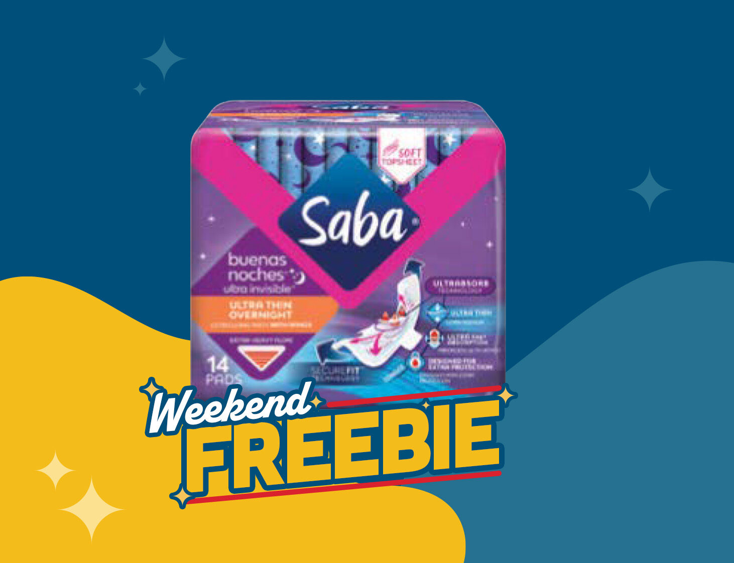 Llévate (1) Toallas Femeninas Saba, 14 ct recortando tu cupón digital en tu aplicación del 27 de Febrero al 1 de Marzo